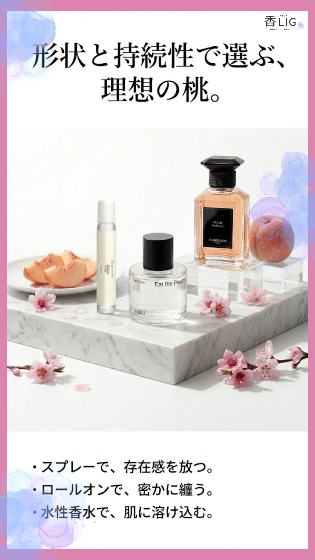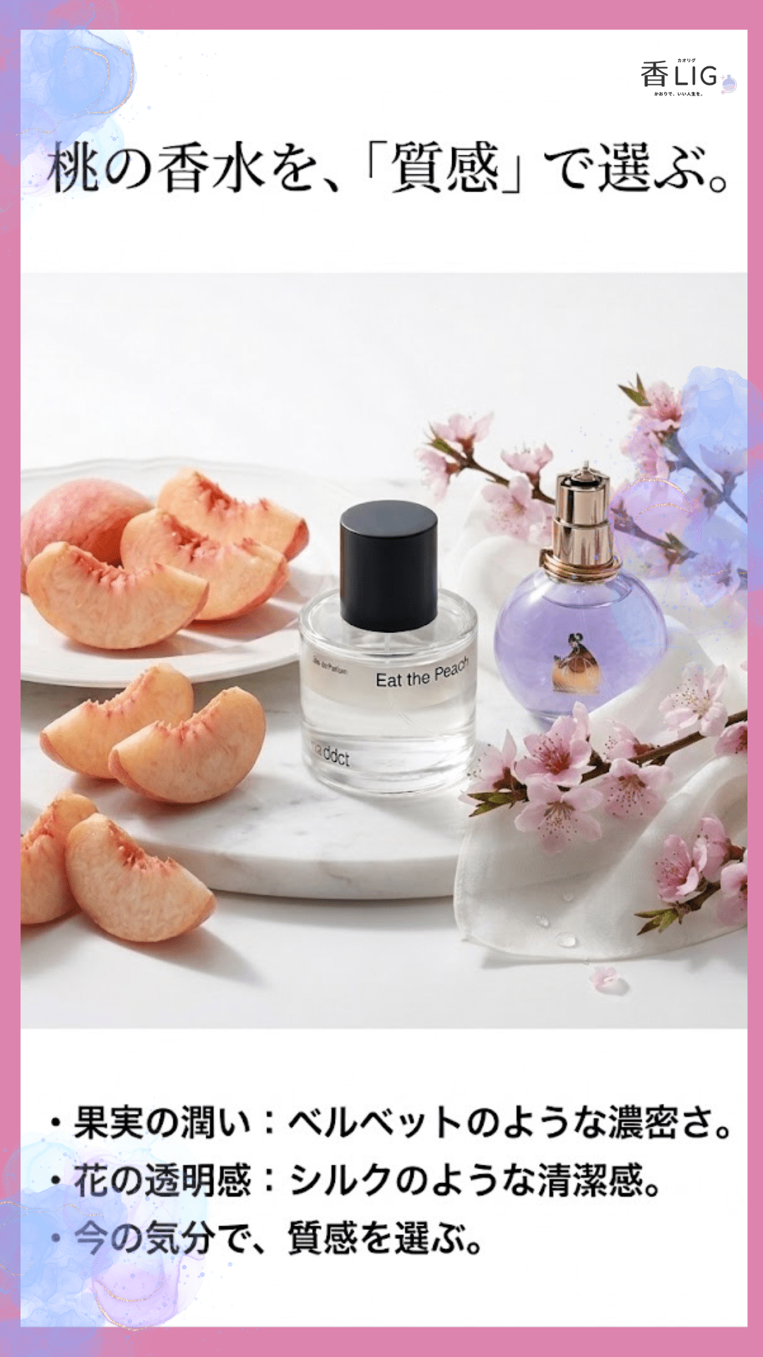 この記事では、香りの専門メディア「香LIG」が、桃の香水おすすめ15選を厳選してご紹介します。